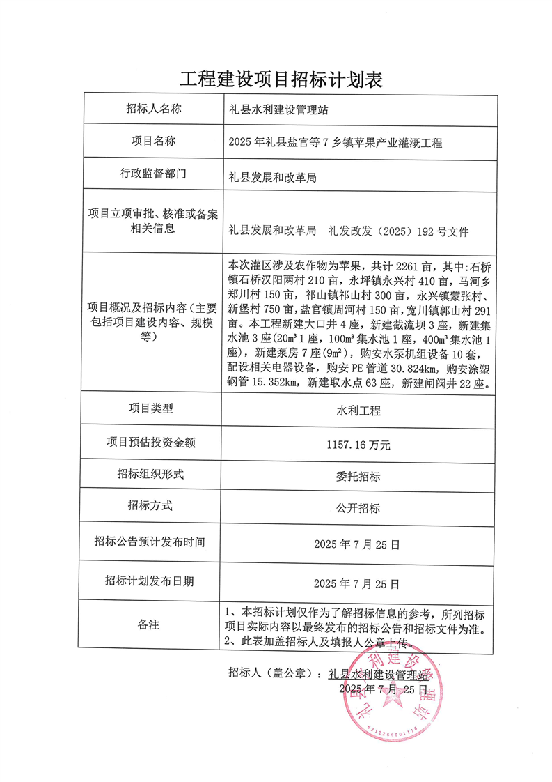 2025年禮縣鹽官等7鄉(xiāng)鎮(zhèn)蘋(píng)果產(chǎn)業(yè)灌溉工程