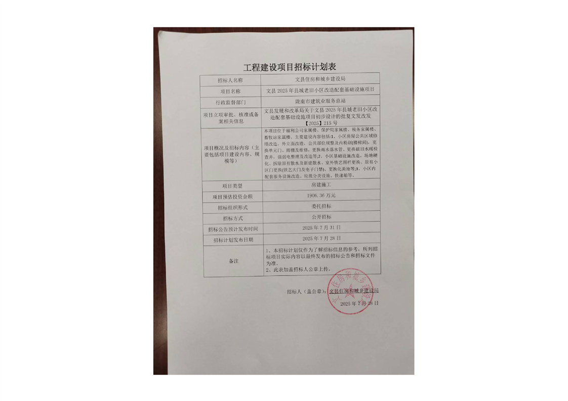 文縣2025年縣城老舊小區(qū)改造配套基礎(chǔ)設(shè)施項(xiàng)目