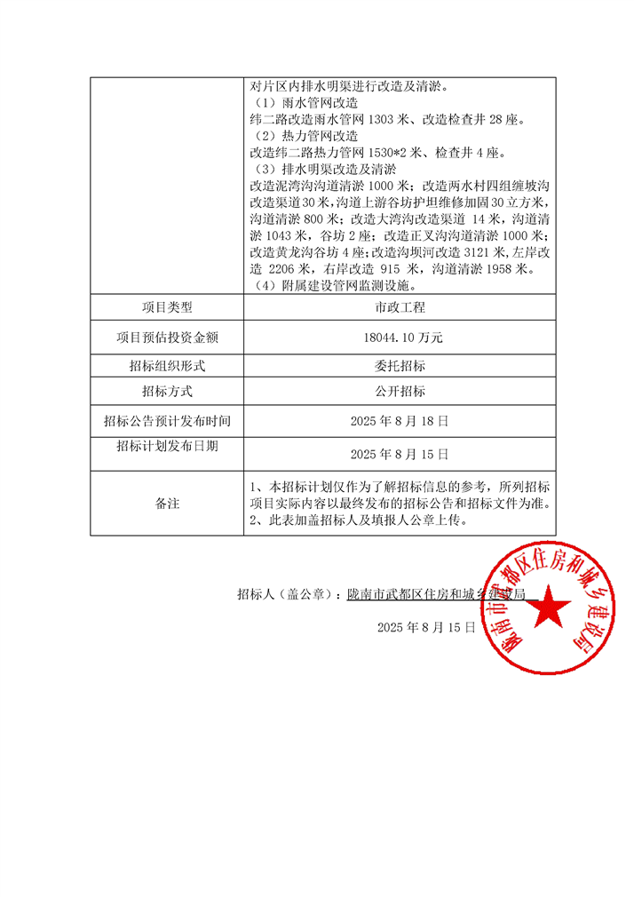 隴南市武都區(qū)兩水片區(qū)地下管網(wǎng)綜合改造項目
