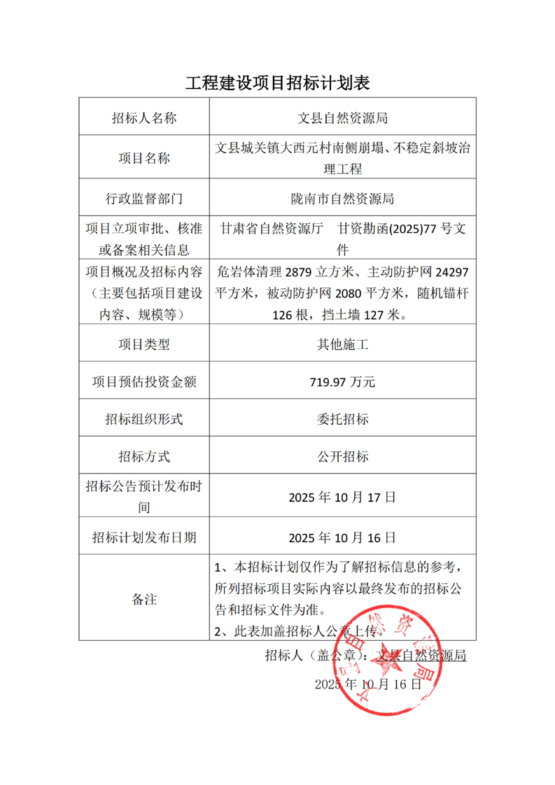 文縣自然資源局工程建設(shè)項(xiàng)目招標(biāo)計(jì)劃.pdf