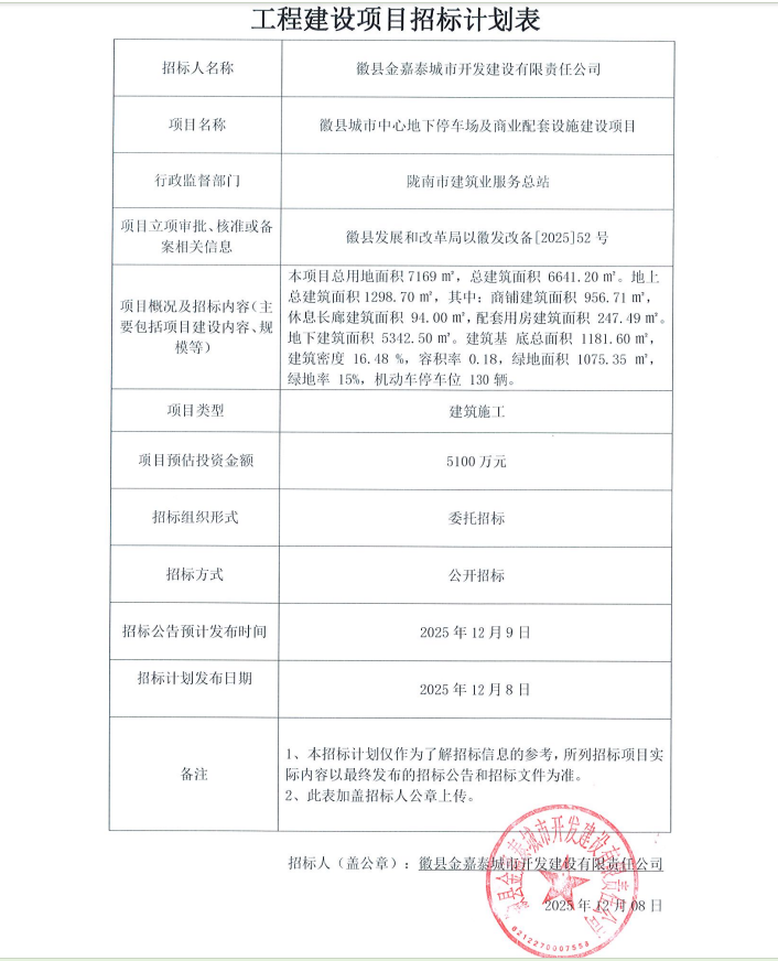 徽縣城市中心地下停車場及商業(yè)配套設(shè)施建設(shè)項(xiàng)目