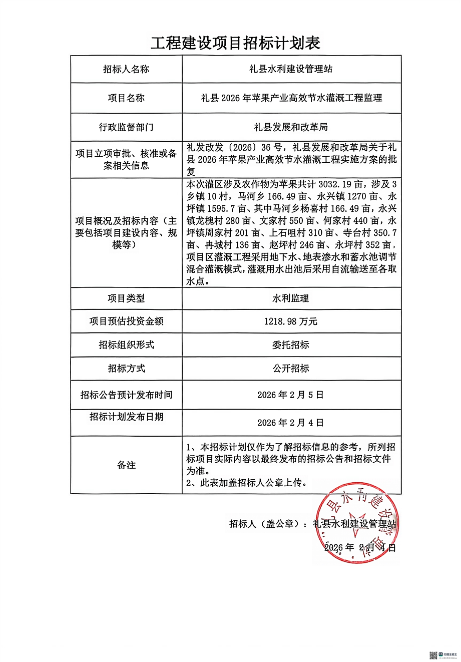 禮縣2026年蘋(píng)果產(chǎn)業(yè)高效節(jié)水灌溉工程監(jiān)理