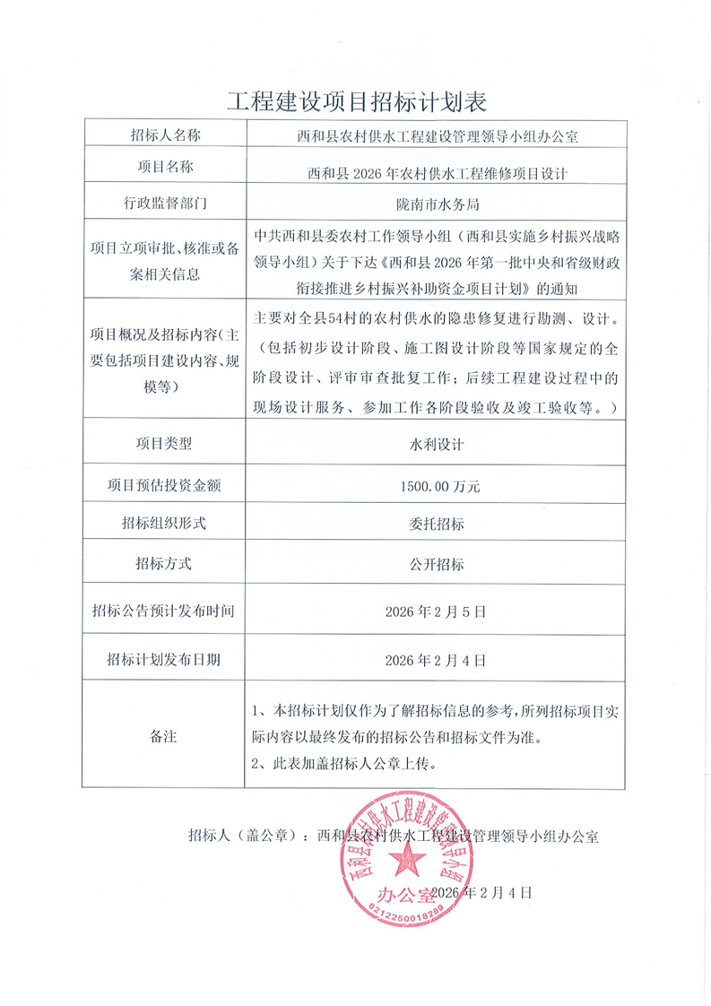 西和縣2026年農(nóng)村供水工程維修項(xiàng)目設(shè)計(jì)