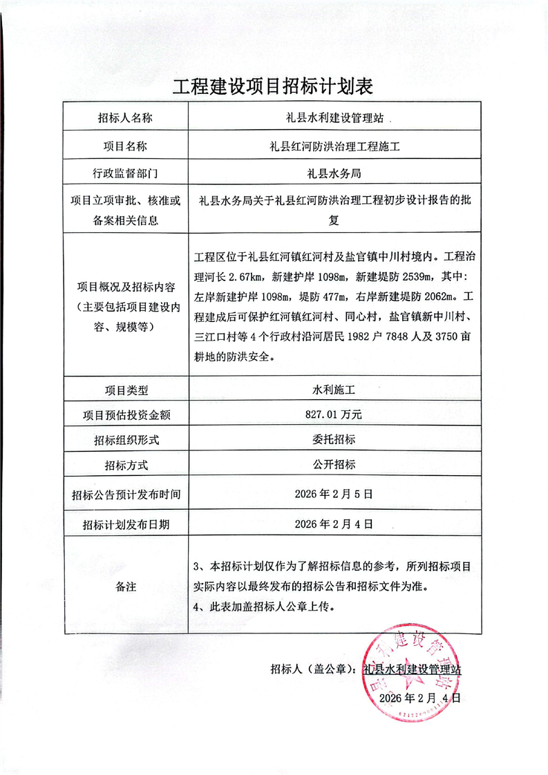 招標(biāo)計(jì)劃表--禮縣紅河防洪治理工程施工.pdf