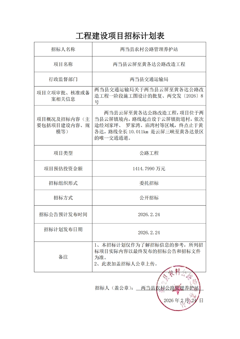 兩當(dāng)縣云屏至黃各達(dá)公路改造工程