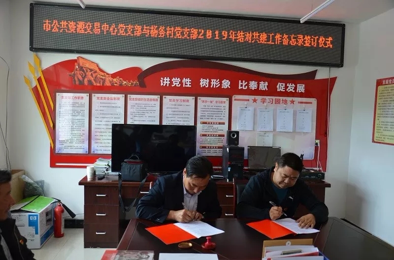 根據(jù)《中共隴南市委組織部關于扎實做好幫扶單位黨組織與貧困村黨組織結(jié)對攻堅工作的通知》要求,市公共資源交易中心黨支部與武都區(qū)黃坪鎮(zhèn)楊務村黨支部在4月啟動開展結(jié)對共建活動基礎上,組織召開雙方黨支部結(jié)對共建工作聯(lián)席會,進一步探討和完善結(jié)對共建方案,簽訂了《隴南市公共資源交易中心黨支部與武都區(qū)黃坪鎮(zhèn)楊務村黨支部2019年結(jié)對共建工作備忘錄》。