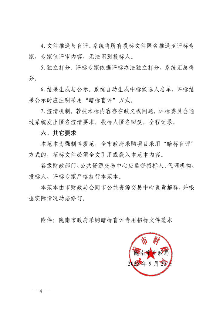 隴南市關(guān)于進(jìn)一步規(guī)范政府采購暗標(biāo)盲評(píng)專用招標(biāo)文件范本制定要求的通知