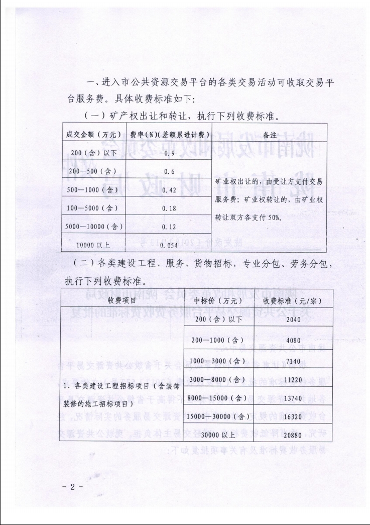 隴南市發(fā)展和改革委員會 隴南市財政局關(guān)于公共資源交易平臺服務(wù)費收費標(biāo)準(zhǔn)的批復(fù)